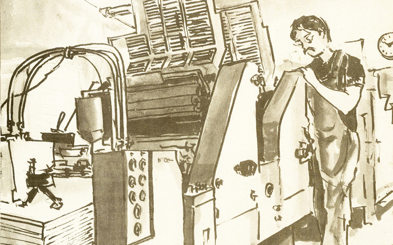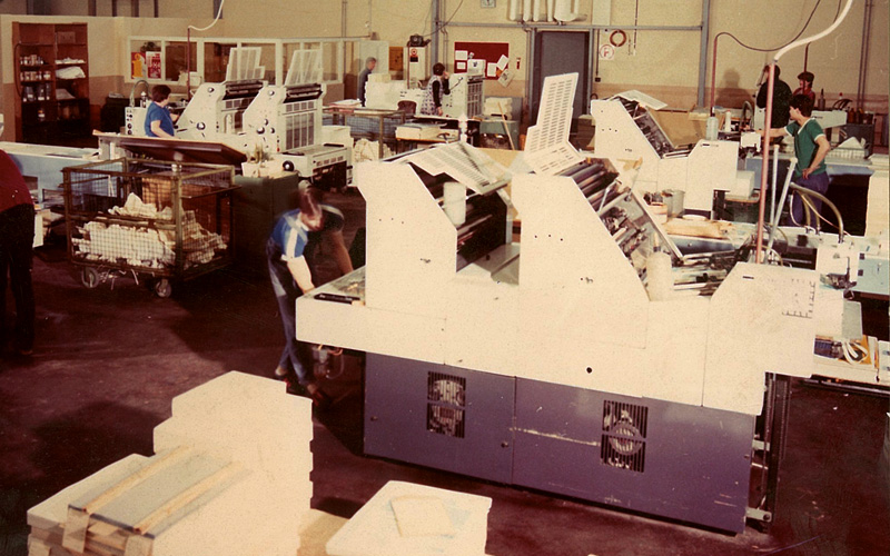 Umstellung auf die Offsetdrucktechnologie mit Handfotosatz, Schreibsatz, Repro, Kopie, Druckmaschinen und der Fertigmacherei